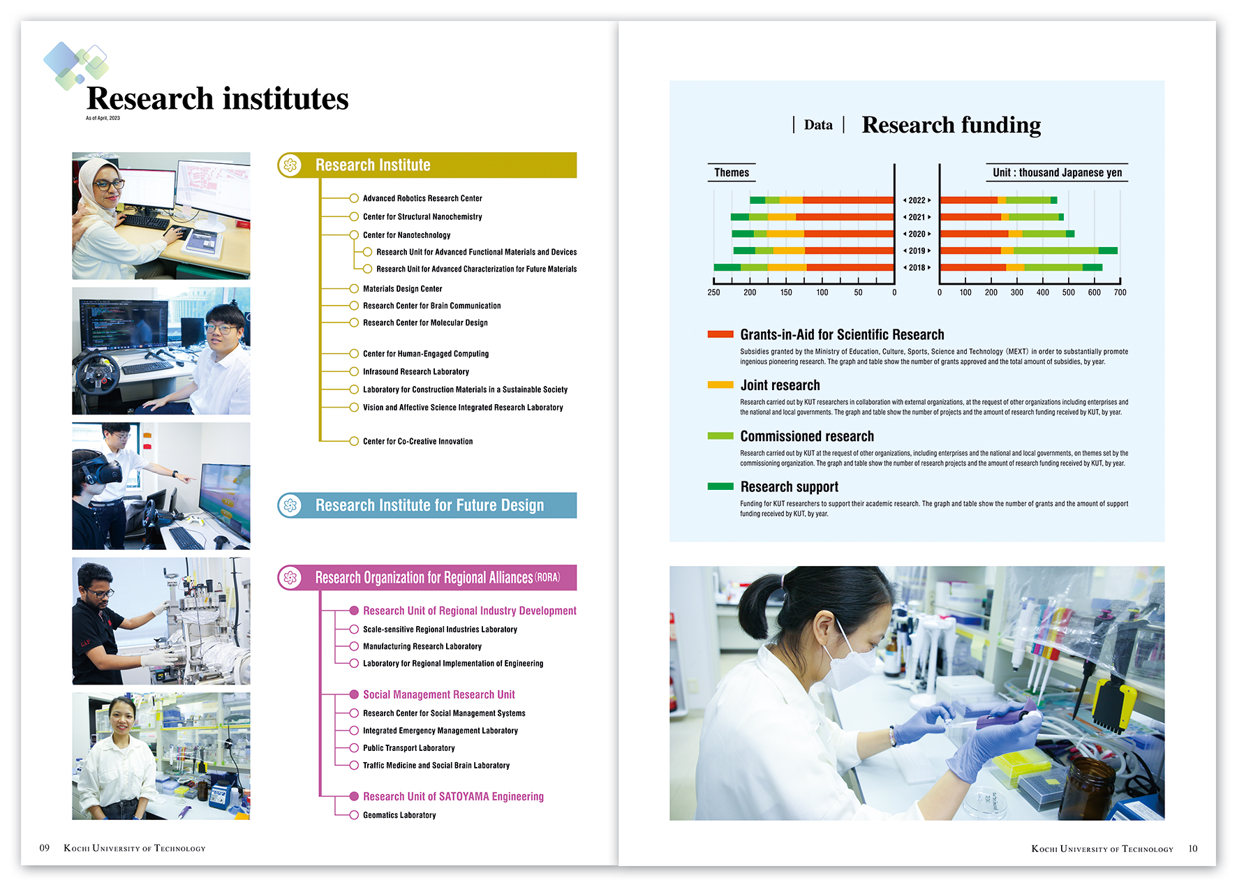 海外留学生を対象とした英語版大学案内パンフレットを作成。従来の日本人に向けた大学案内パンフレットとは別に、デザインも中身も違う仕様で展開。他社が制作した前年のパンフレットは、文字が中心のフォーマット化されたレイアウトとデザインで、写真が効果的に使われず魅力が伝わりづらいのが課題でした。そこでページの構成、デザインのトーンや文字組の設計など見直しを実行。ページ数は同じだが、情報を整理し写真も前回より増やし、余白も意識したシンプルなデザインに変更。レイアウトもフォーマット化するのではなく、一部の要素や写真の配置をずらした、動きのあるレイアウトで構成。志望校として認識してもらうために、共感性、雰囲気や特長も大事にしたデザインで制作しています。